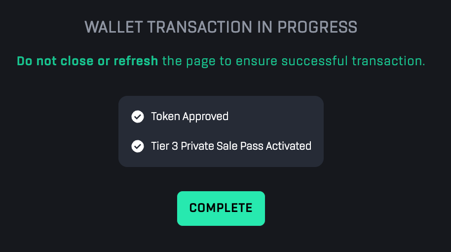 After confirming transaction, the Private Sale Pass will be activated.