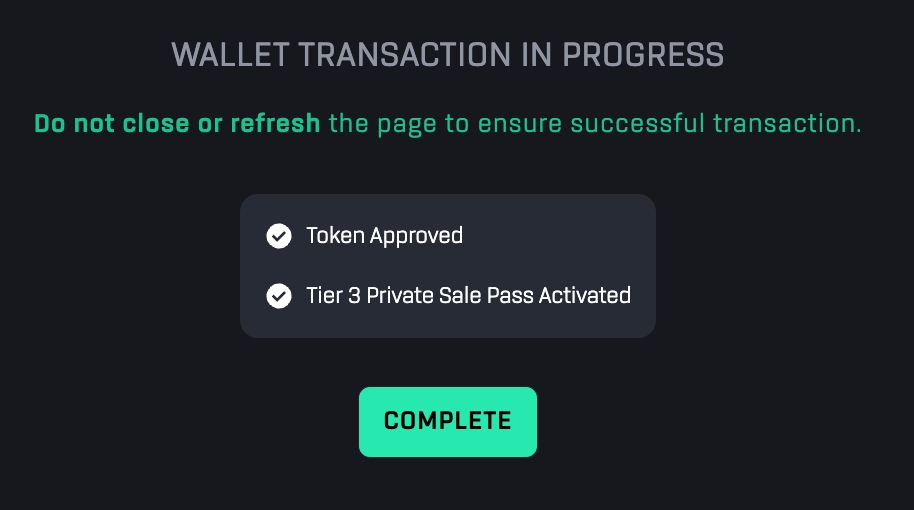 3. After confirming transaction, the Private Sale Pass will be activated.