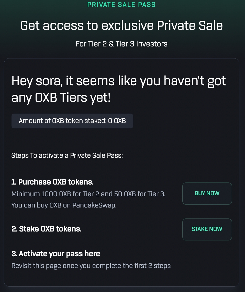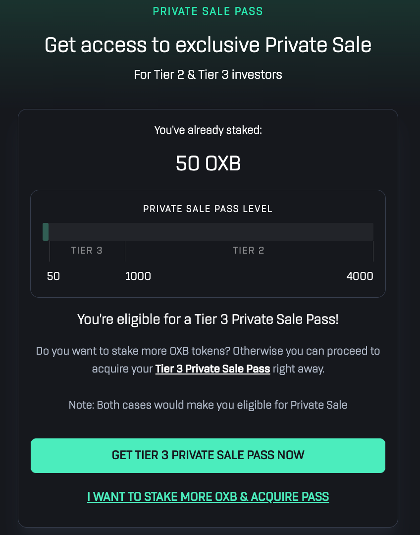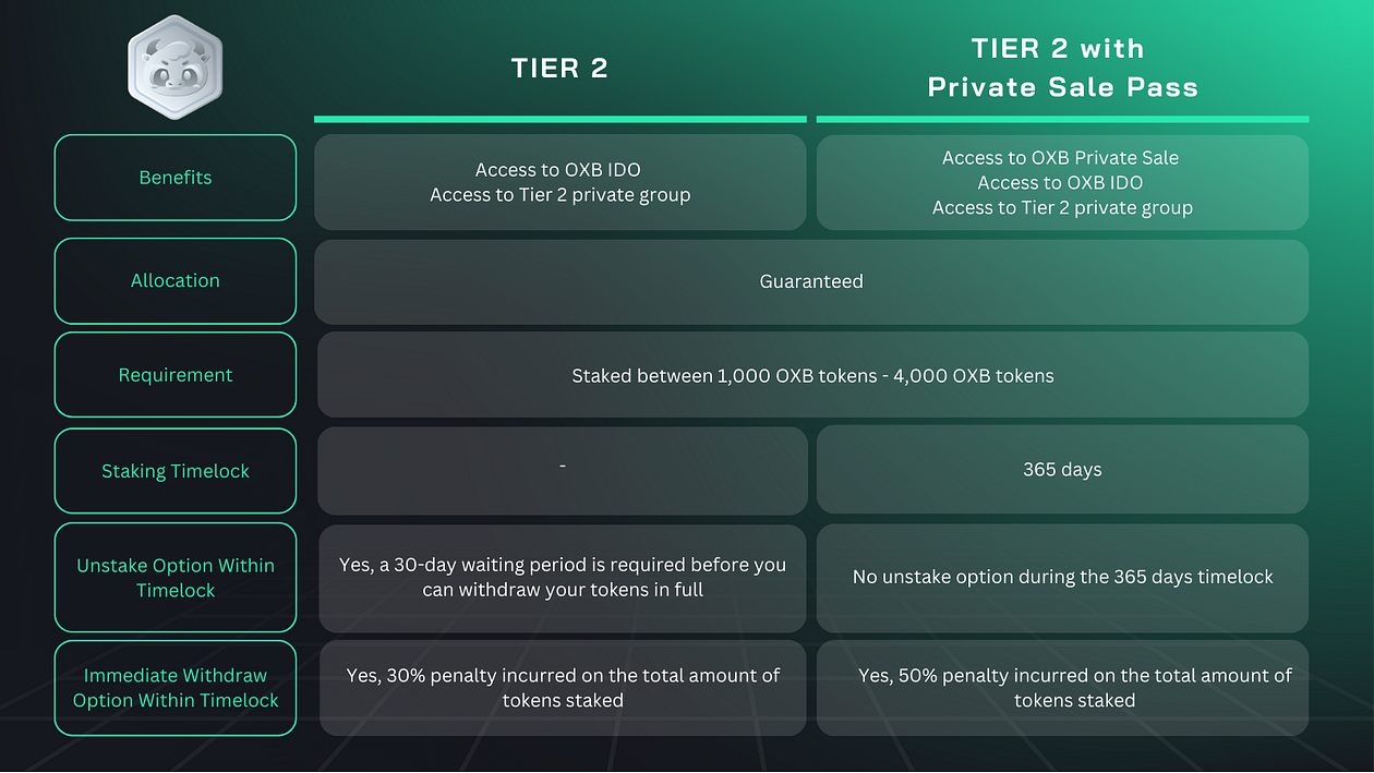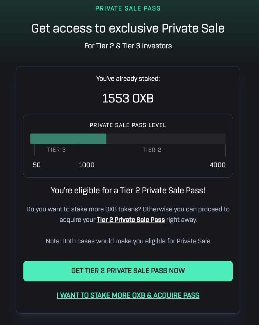 For Tier 2 Investors: Holders of a Private Sale Pass enables access to Oxbull’s Private Sale that were previously exclusive to Tier 1 investors. Allocations will be in accordance to your $OXB holdings staked.